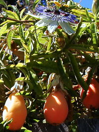 The fruit trees create a beautiful approach to the home through an orchard lining the driveway and hillside area. The landscape design attractively groups plants by water requirements to optimize the irrigation requirements and terraces the slopes to reduce water use while helping to maximize the planting area.